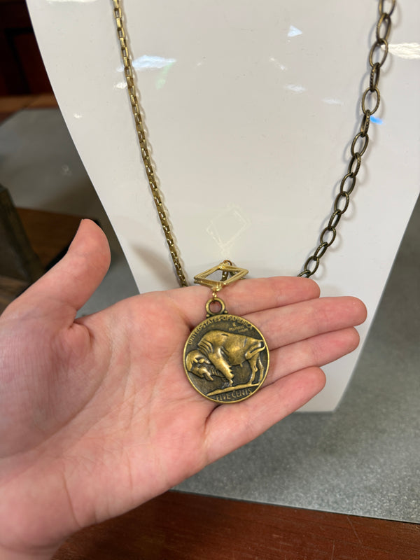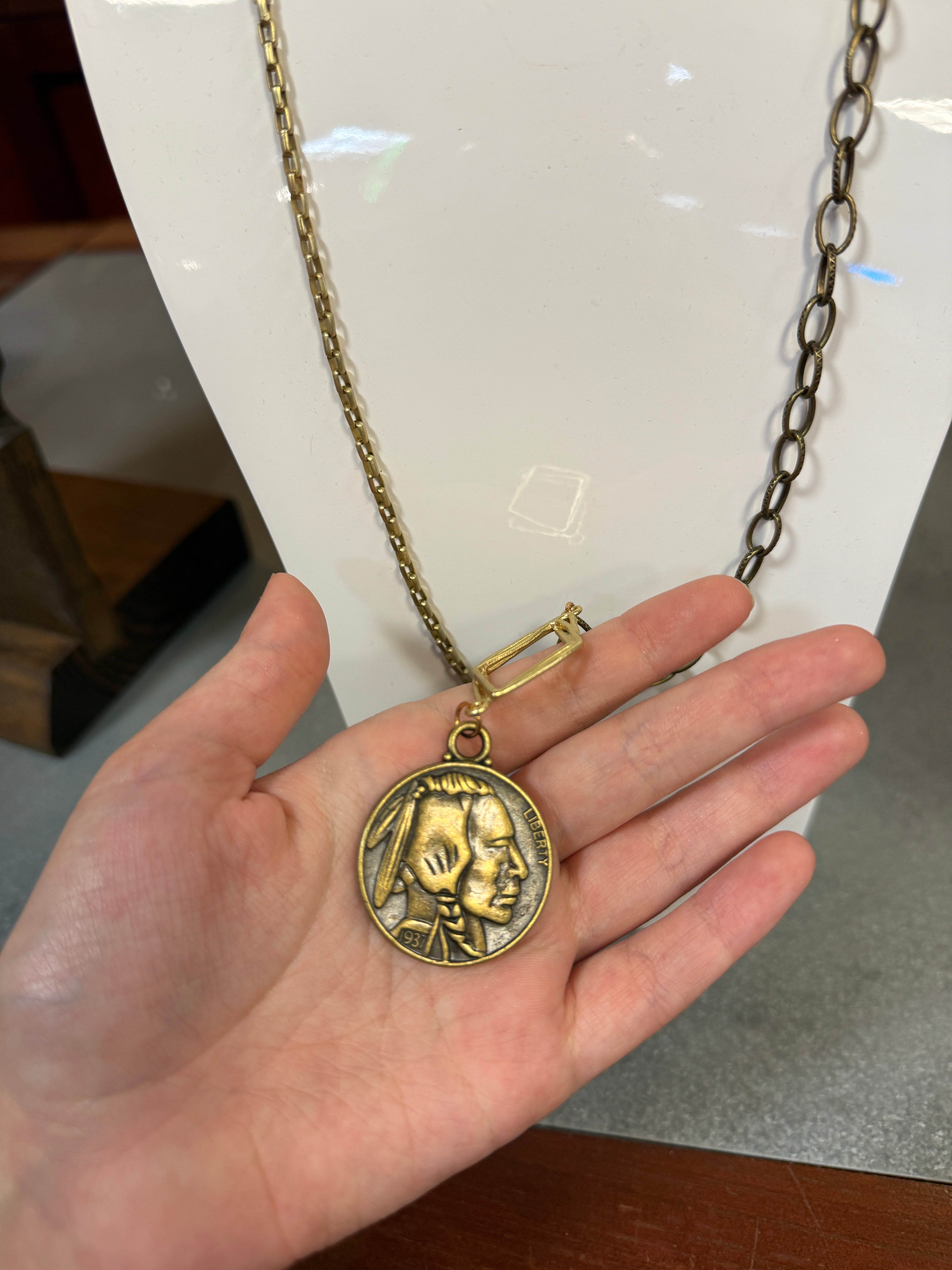 Make a statement with the Triple Play Double Sided Coin Necklace, featuring a long chain and a charming diamond-shaped connector that links to a large vintage coin you can admire from both sides. This playful piece adds a touch of timeless flair and lets your style shine with every turn. Perfect for layering or worn solo to spark conversations and show off your unique vibe.