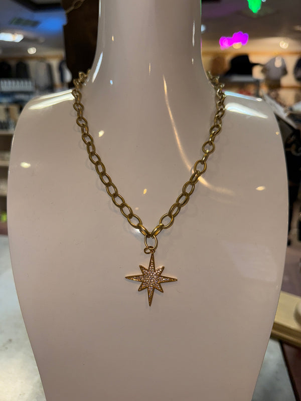 Add a twinkle to your look with the Triple Play Shining Star Necklace! Featuring a delicate chain and an 8-pointed sparkly star pendant, this playful piece catches the light—and everyone's attention. Perfect for adding a dash of celestial charm to any outfit, it’s your new go-to for sparkle and shine!
